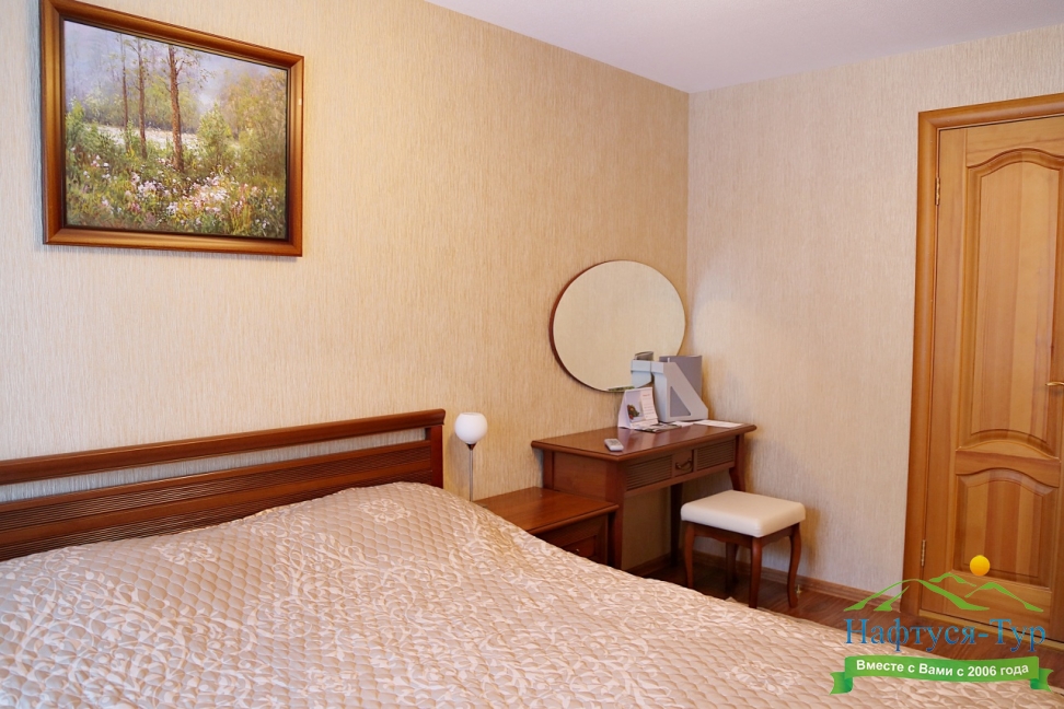 диван, зеркало, кровать двуспальная, прикроватные тумбочки, стол, шкаф