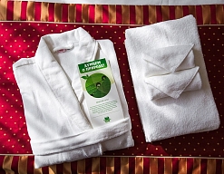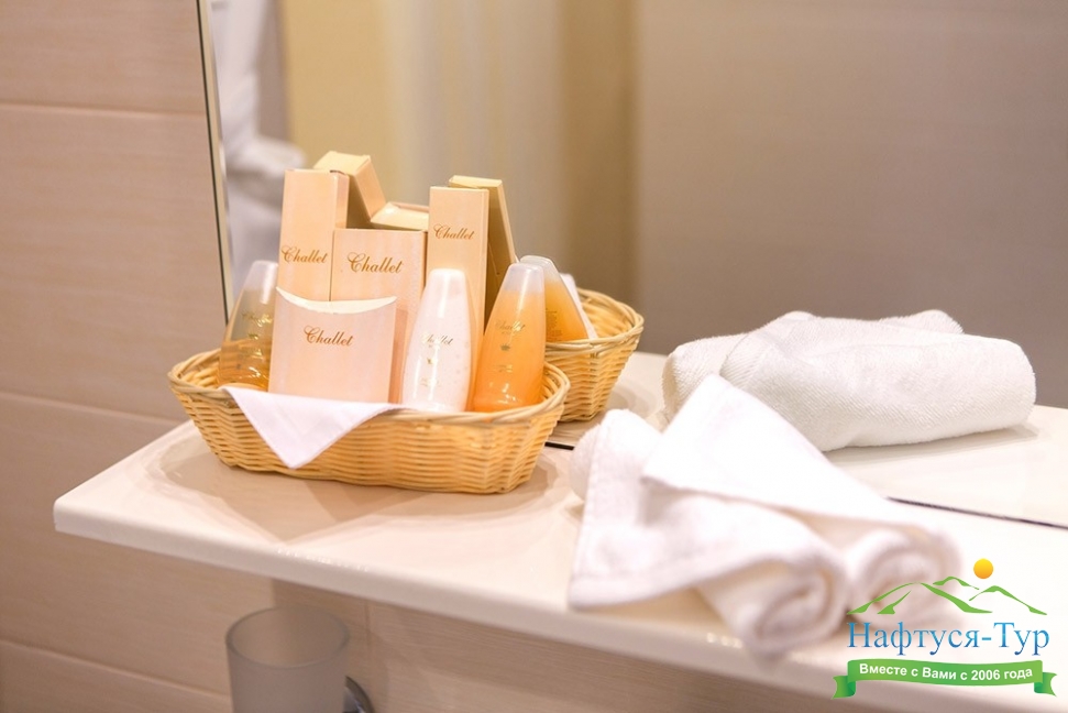 с ванной, тапочки, туалетные принадлежности, фен, халат