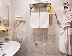 с ванной/душем, тапочки, туалетные принадлежности, фен, халат