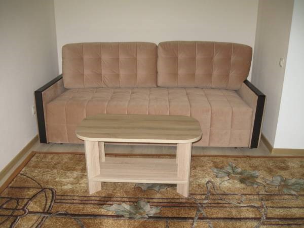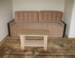 диван раскладной, кровати односпальные, прикроватные тумбочки, стол, столик журнальный, стулья, шкаф, шкаф для посуды
