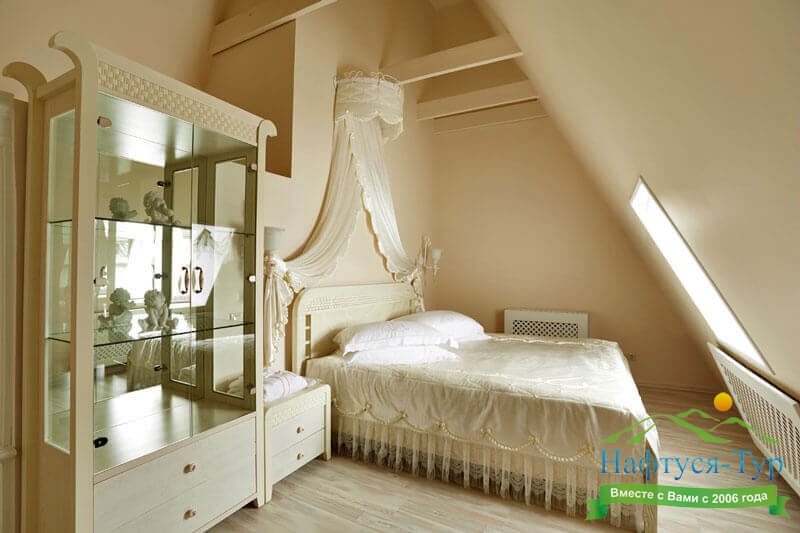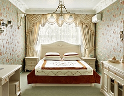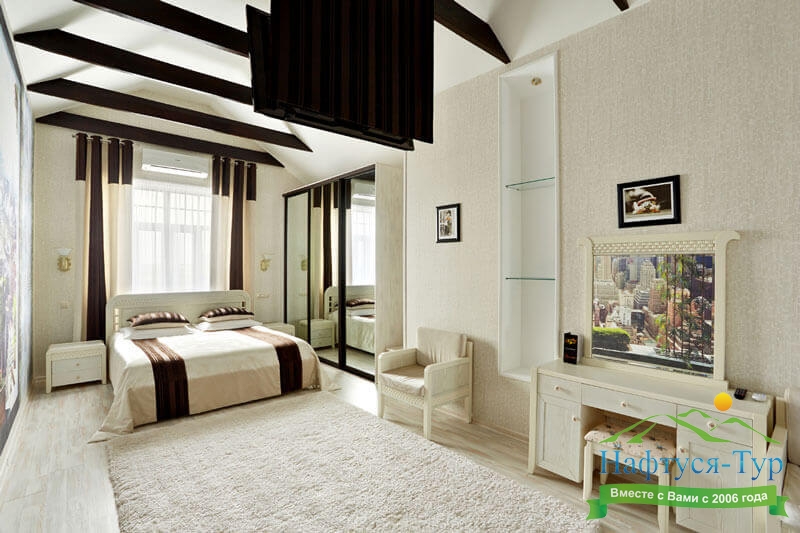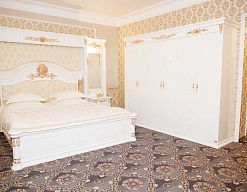 кровать двуспальная, набор мягкой мебели, прикроватные тумбочки, стол, стул, шкаф