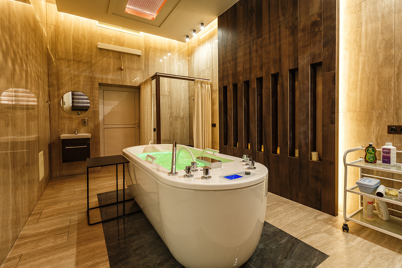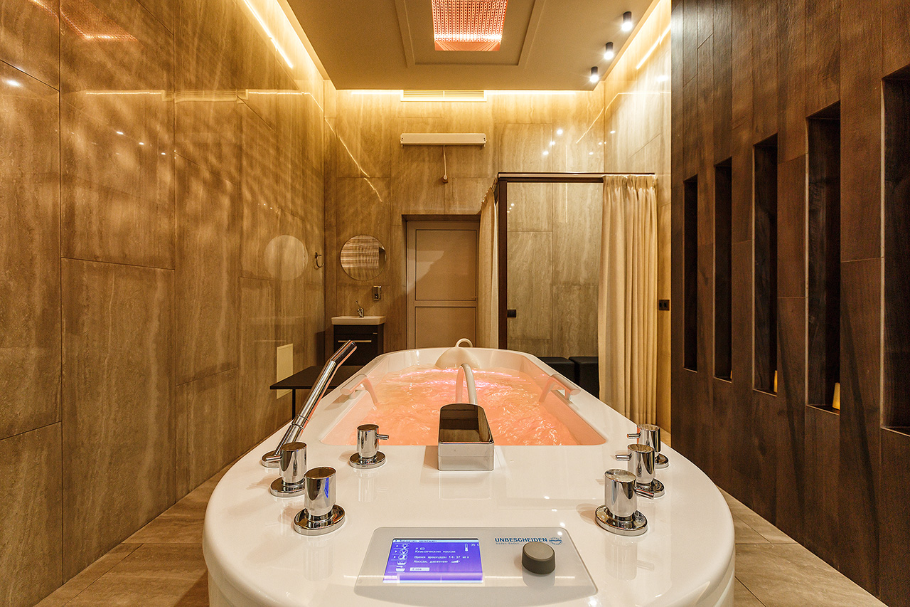 - в комплексе терморелакса - лечебный бассейн (12х25 м), традиционная финская сауна, аромо-сауна, комната отдыха, чайная комната, душевые и русский душ.