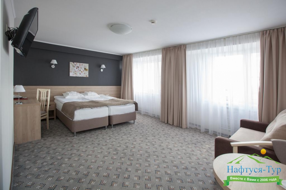 кровать двуспальная/ две полутороспальные кровати, набор мягкой мебели, прикроватные тумбочки, стол, столик журнальный, тумба багажная, шкаф