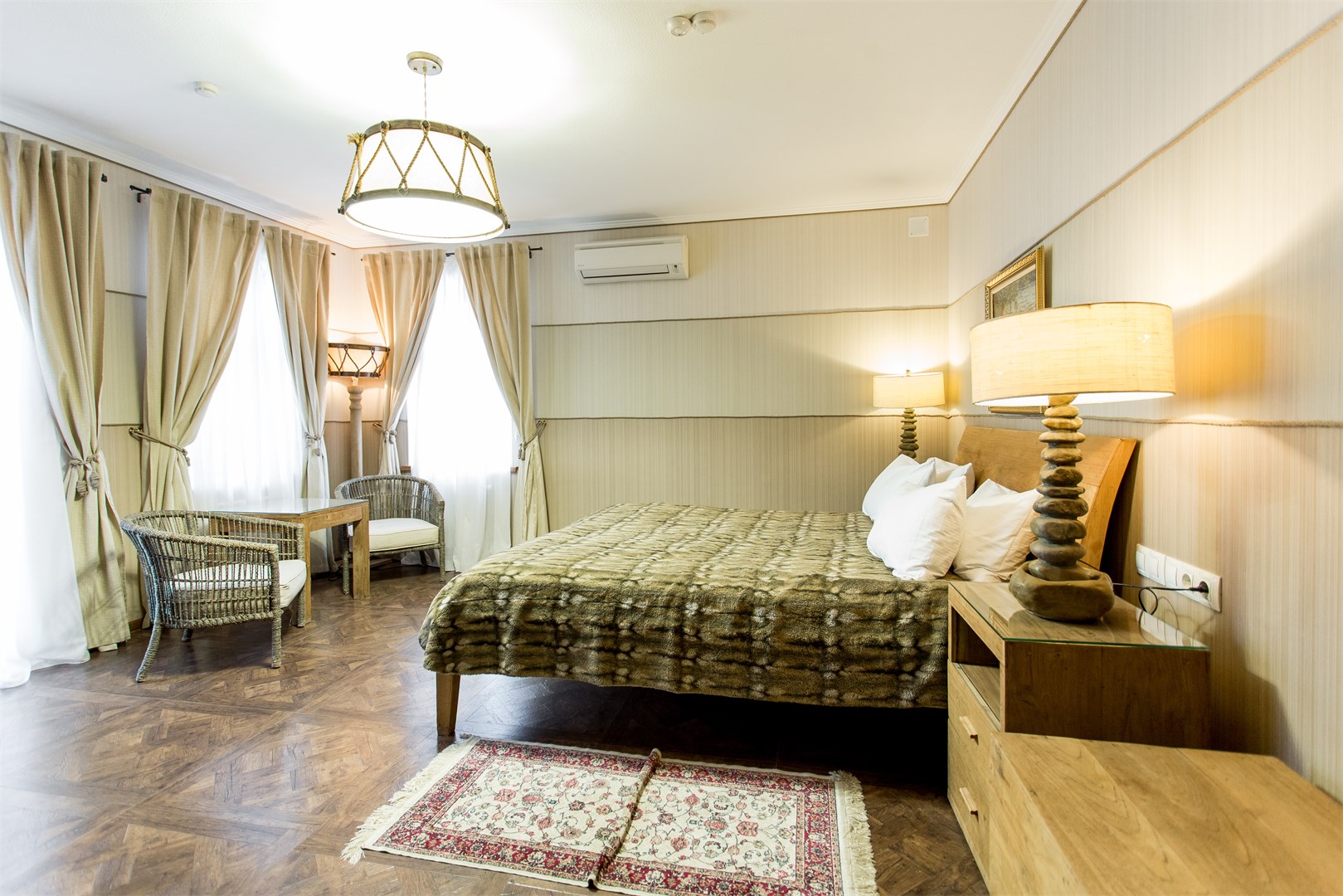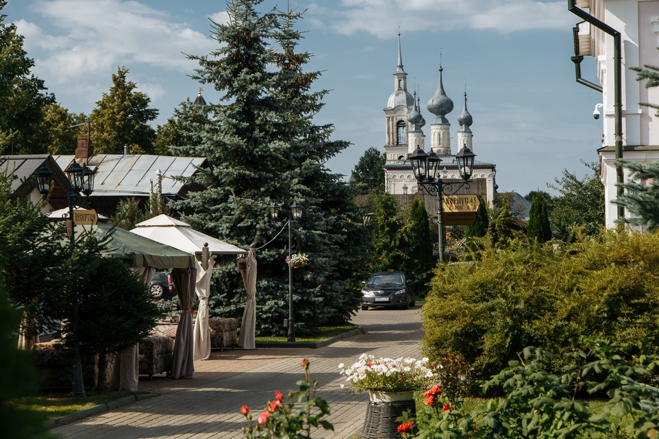 Отель расположен в центре города Суздаля, в пешей близости от основных достопримечательностей. Комплекс благоустроенных двухэтажных коттеджей со всеми современными удобствами на краю тихого городского парка. На территории туристического комплекса есть свой спортивный комплекс с бассейном, спа-центром, фитнес-залом, спортивным залом, сауной, баней и хамамом. Также, есть большой шатер, площадью 1200 кв м. Несколько переговорных комнат, конференц-зал с системой синхронного перевода и киноконцертный зал.
