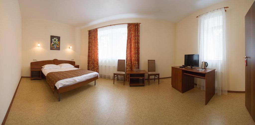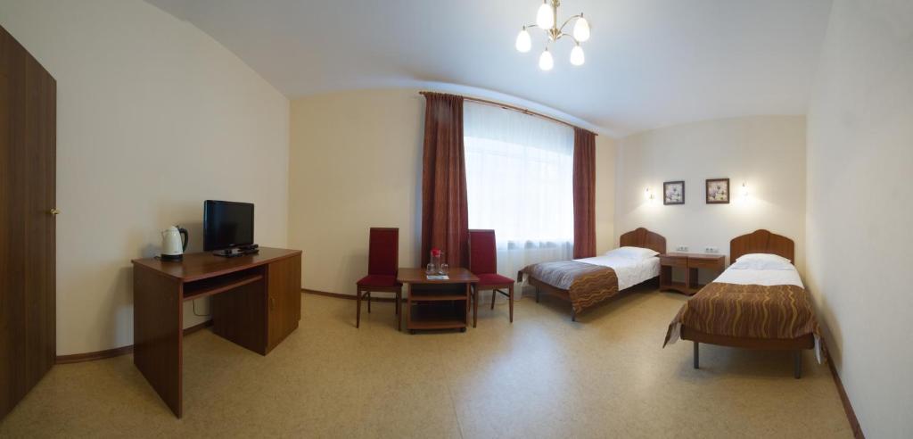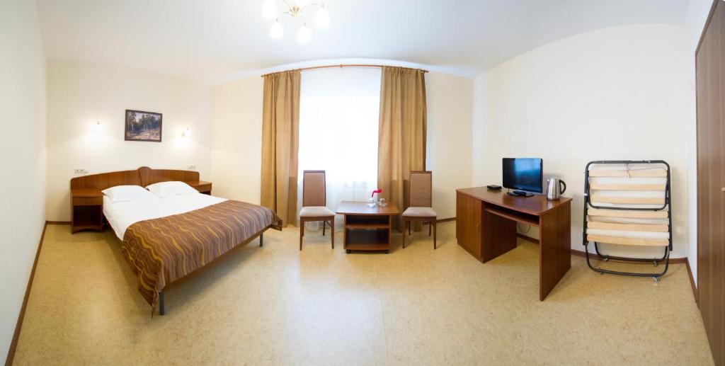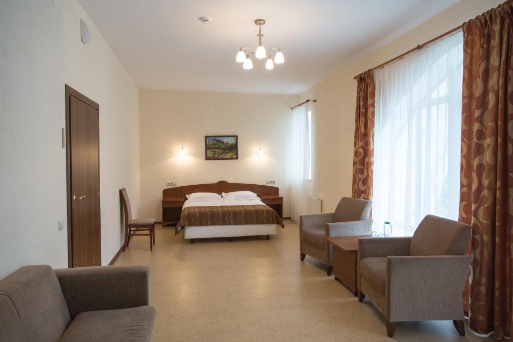 На благоустроенной территории разместились три трехэтажных корпуса с мансардными этажами, три двухэтажных гостевых дома, одноэтажные домики в лесу, дуплексы и здание физкультурно-оздоровительного комплекса. Жилой фонд базы отдыха рассчитан на единовременное размещение более 300 человек. Гостей ожидают светлые номера категории Стандарт, Семейный и Комфорт, оснащенные ванной комнатой с душем и бытовой техникой — телевизором, кондиционером, холодильником.