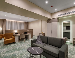 гладильная доска, кондиционер, мини-холодильник, сейф, телевизор ЖК, телефон, утюг, чайный набор посуды, электрочайник
