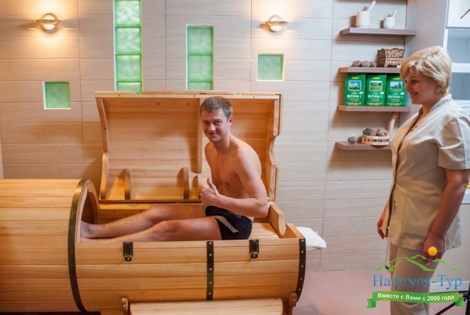 Кедровая бочка (фитосауна, фитопаротерапия, термококон) – комплексный метод теплового и фитотерапевтического воздействия на человеческий организм, обеспечивающий целый спектр полезных результатов. Для проведения процедуры предназначена специальная бочка, в которую усаживается человек (голова остается сверху), а затем в замкнутый объем бочки подается водяной пар, насыщенный различными фитопрепаратами (эфирные масла, травы и т.д.). При этом лечебный эффект обеспечивает и сам материал, из которого изготовлена бочка, ведь уже многие века хорошо известна целебная сила древесины сибирского кедра. Кедровая бочка часто используется в СПА-центрах для очищения и омоложения организма, избавления от целлюлита, лишнего веса, улучшения состояния кожи. Но эту процедуру также могут предписать и медики целого ряда санаториев для лечения синдрома хронической усталости, снятия стрессовых состояний, повышения иммунитета, нормализации работы системы обмена веществ.Санатории с процедурой Кедровая бочка