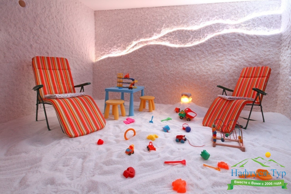 Песочная комната (песочная или арт-терапия) – название специальным образом оборудованного помещения и методики, использование которой обеспечивает психологическую разгрузку, релаксацию людей всех возрастов. Как правило, в такой комнате имеется определенное арт-окружение (например, фигурки, скульптуры), а основным оборудованием выступают две песочницы. Одна из них содержит сухой песок, предназначенный для создания узоров, вторая – мокрый песок, из которого можно лепить фигурки. В результате пребывания и занятий творчеством в таком помещении человек избавляется от психоэмоционального напряжения, добивается релаксации при одновременной активизации деятельности нервной системы, улучшает свое настроение. Песочная комната на сегодня оборудована в ряде санаториев нашей страны и применяется в качестве дополнительного средства при лечении множества заболеваний.